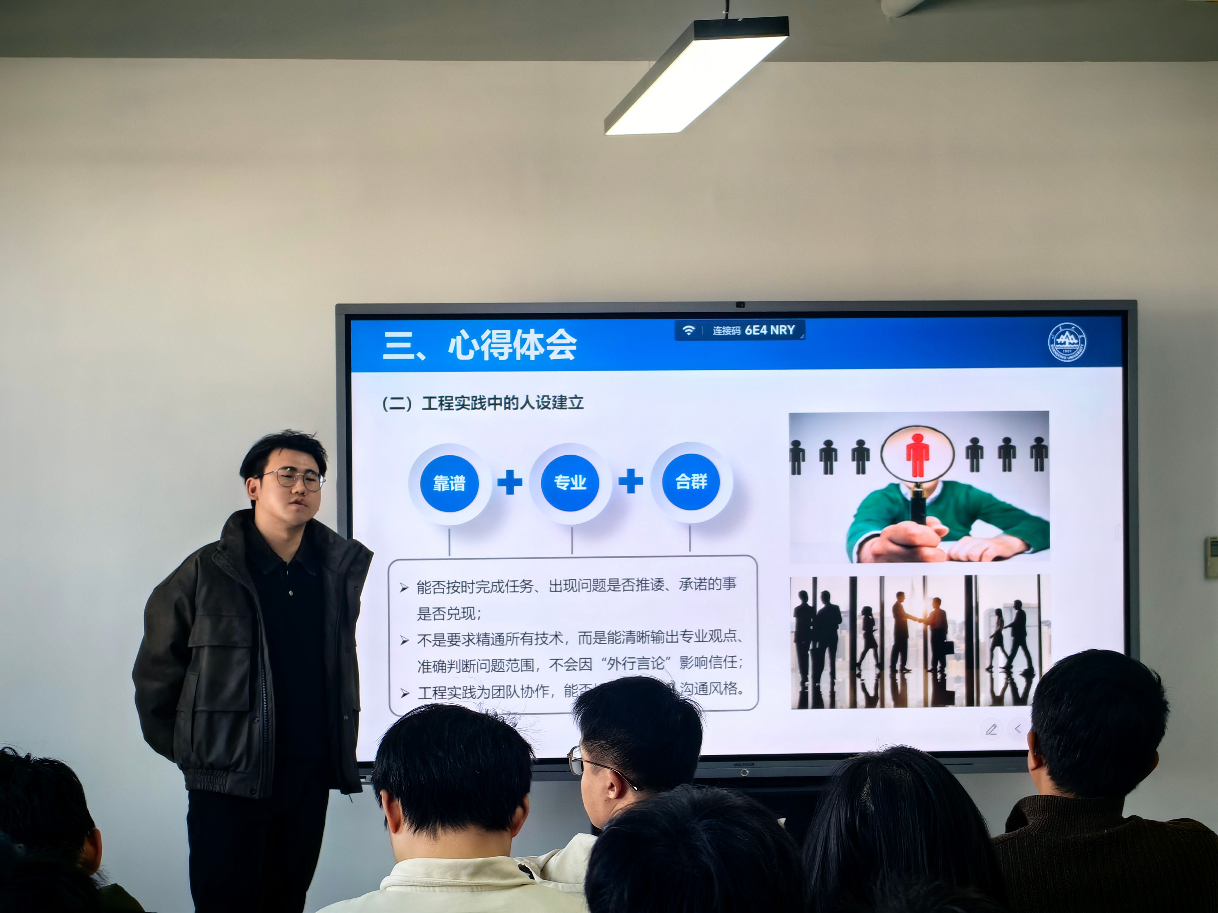 分享结束后,同学们结合个人所学方向和未来发展目标与主讲人进行了交流讨论。活动由国卓院辅导员刘梦冬主持,2025级学生代表参加活动。