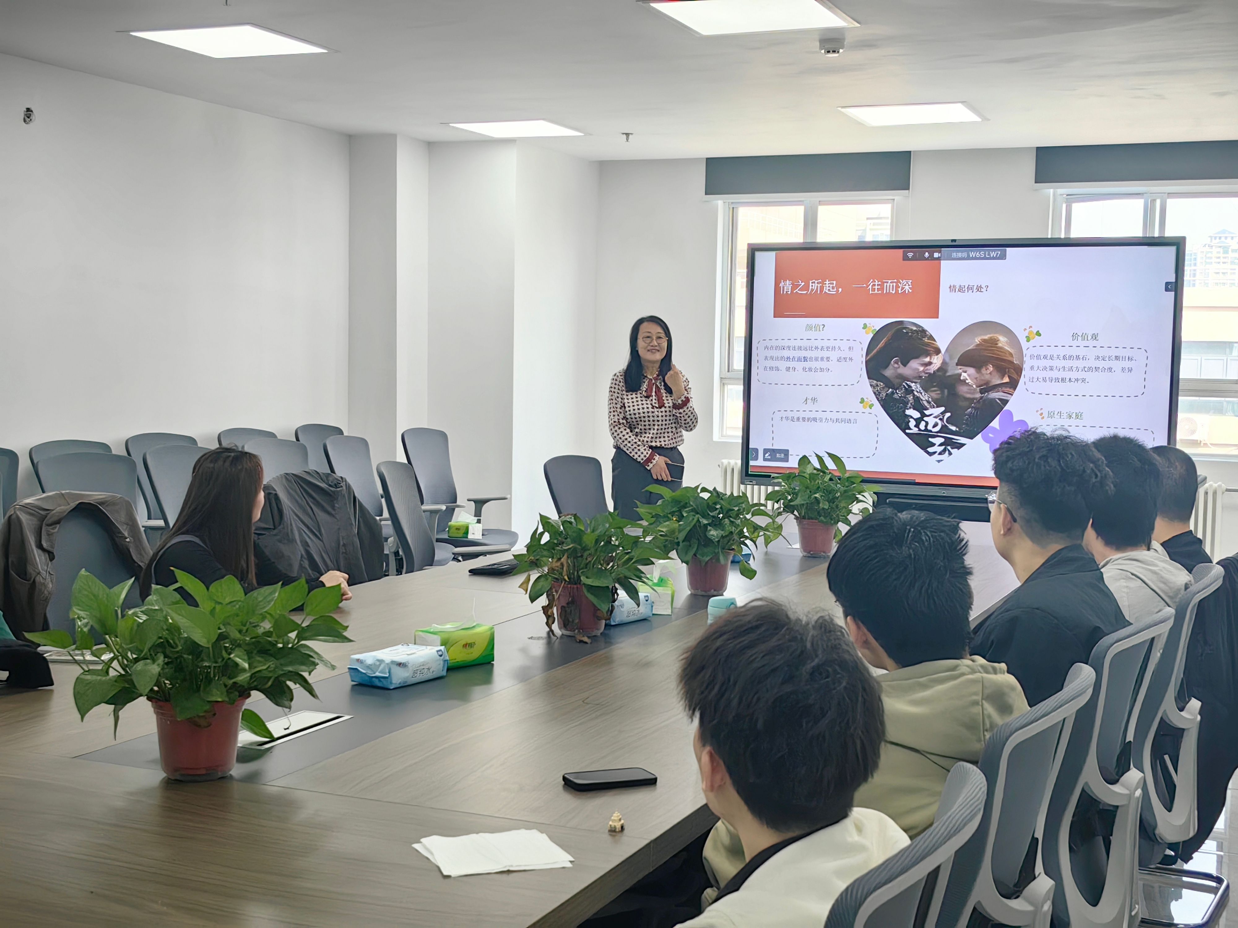 活动伊始,在刘倩倩老师的引导下,线上、线下的同学们分别进行自我介绍,在轻松愉快的氛围中,原本略显羞涩的现场气氛迅速升温,拉开了这场关于“爱”的探讨序幕。讲座中,刘倩倩老师以热播剧《逐玉》中的情感互动巧妙切题,阐述了恋爱中沟通与相处的重要性。她剖析了情感萌发的心理机制,针对如何拓展交际渠道给出了具体建议,围绕关系推进的关键节点,系统讲解了从关系熟稔度的识别、告白过程的礼仪细节,到失利时心态调节的完整链条。活动最后,她强调“健康的恋爱关系”是彼此成就与共同成长,而非单方面的依赖或消耗,引导同学们构建积极向上的情感世界。